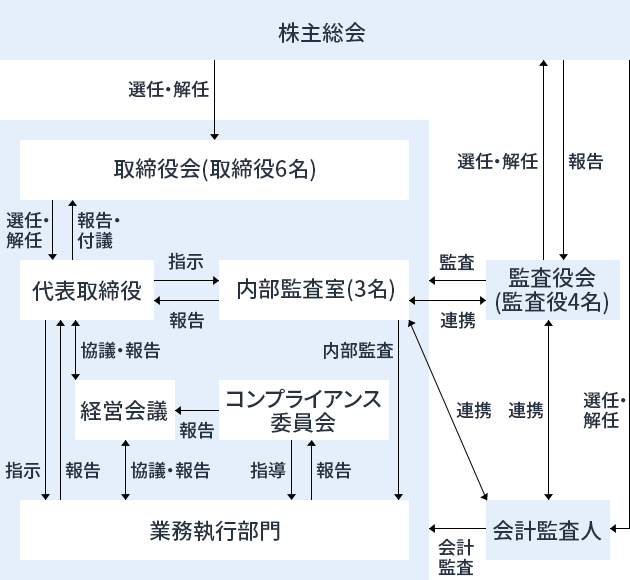 当社グループは、お客様の期待を感動に変えるため、常に自らを磨き、理想を実現させるため、ためらうことなく変革への挑戦を続け、常に多くの人々(ステークホルダー)に支えられていることに感謝し、謙虚な気持ちで事業活動を行っております。この行動規範に従って、法令、社内規則、方針を遵守し誠実に取り組み、最適なコーポレート・ガバナンスの構築に努めております。