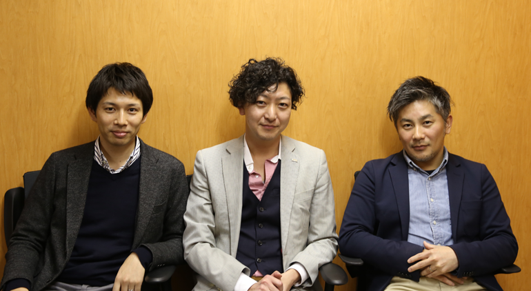 四ノ宮彰人:2008年入社。ソフトバンクの法人携帯販売からキャリアをスタート。現在はビジネスフォンを主に扱う BNS事業部 次長。小澤優:2008年入社。四ノ宮さん同様ソフトバンクの法人携帯販売からキャリアをスタート。2014年からホームページ制作などを請け負うインターネットメディア事業部に所属。現在は同事業部 次長。島田祐輔:2005年入社。OA事業部→回線系事業部に移り離職するも、復職し現在はコピー機を取り扱う OSS事業部 次長。